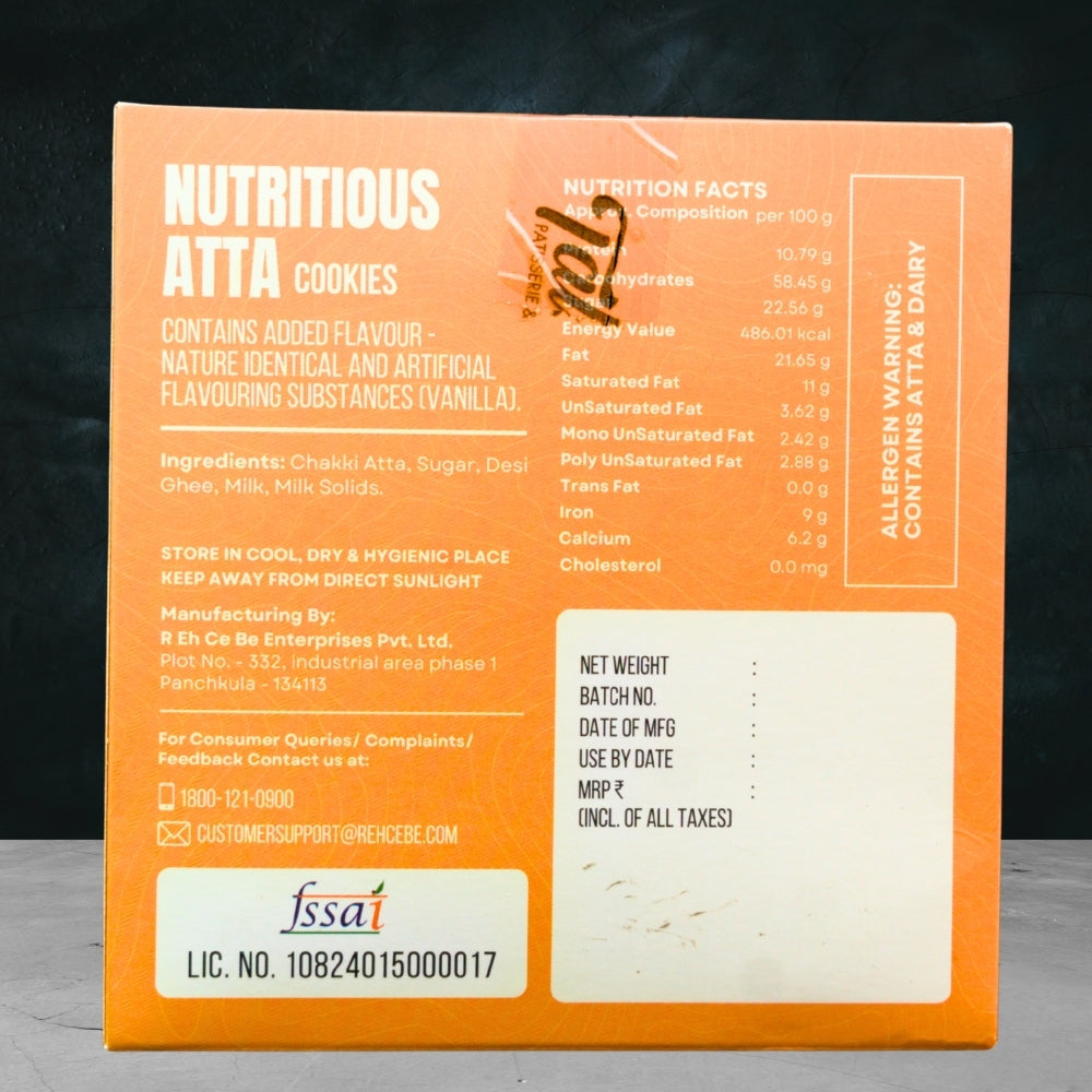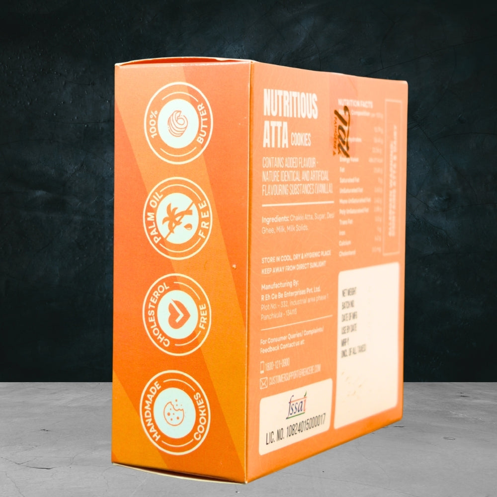 Rediscover the charm of home-style goodness with our Atta Cookies a wholesome twist on a timeless classic. Made with stone-ground whole wheat flour (atta), these cookies are handmade in small batches, crafted with 100% pure butter, and completely palm oil-free and cholesterol-free. Every bite offers a rich, rustic flavor and a comforting crunch that feels like a warm hug from home.